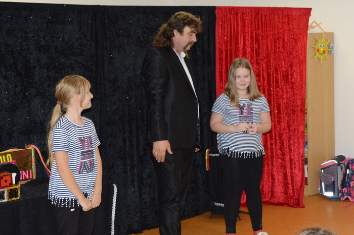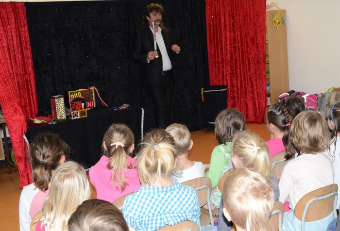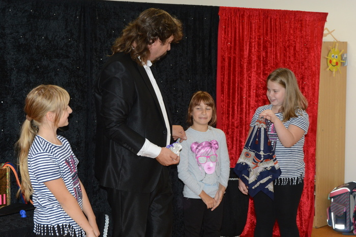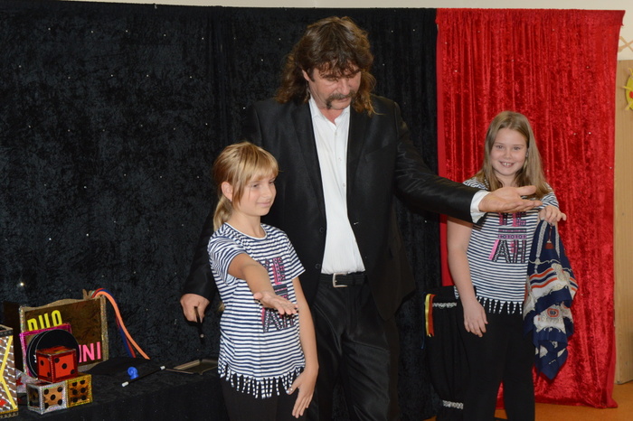 Po roce zavítalo do ŠD DUO WALDINI. A opět se bylo na co dívat a žasnout nad tím, jak se stane z papírové holubičky rázem živá, kde se vezme v prázdné bedýnce králíček, černé kruhy se změní na žluté, fouknutím se z prázdné krabičky stane skoro bezedná, kde se vzal ve zlaté krabičce prstýnek, když ho celou dobu držela Adélka v ruce pod šátkem. Vystoupení bylo pro všechny velkým zážitkem, zvlášť když si kouzlení mnozí z nás mohli vyzkoušet na vlastní kůži.
