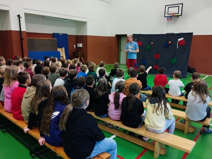Jako vánoční dárek pro děti navštívilo naší družinu duo Míla a Tom se svým kabaretním programem plným zábavy, vtipných komentářů, kouzel a pohybových aktivit. Děti, ale i paní vychovatelky si užily hodinku legrace a nečekaných překvapení. Mohly se stát součástí kouzelnických čísel, kdy držely rekvizity nebo dokonce i samy kouzlily. Pro všechny to byl krásný zážitek, na který budeme dlouho vzpomínat.